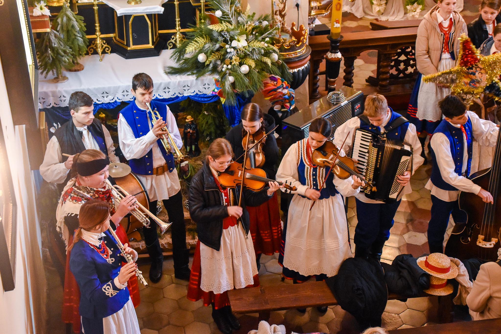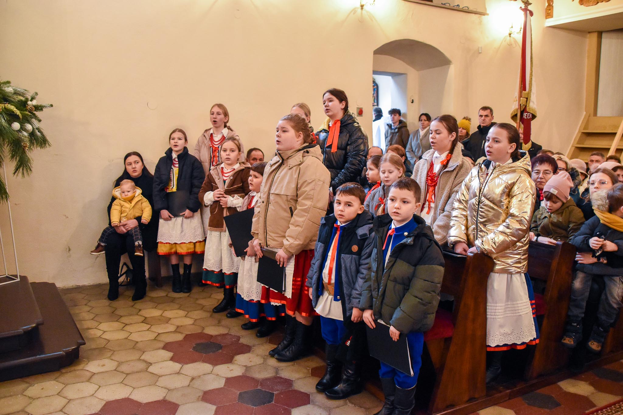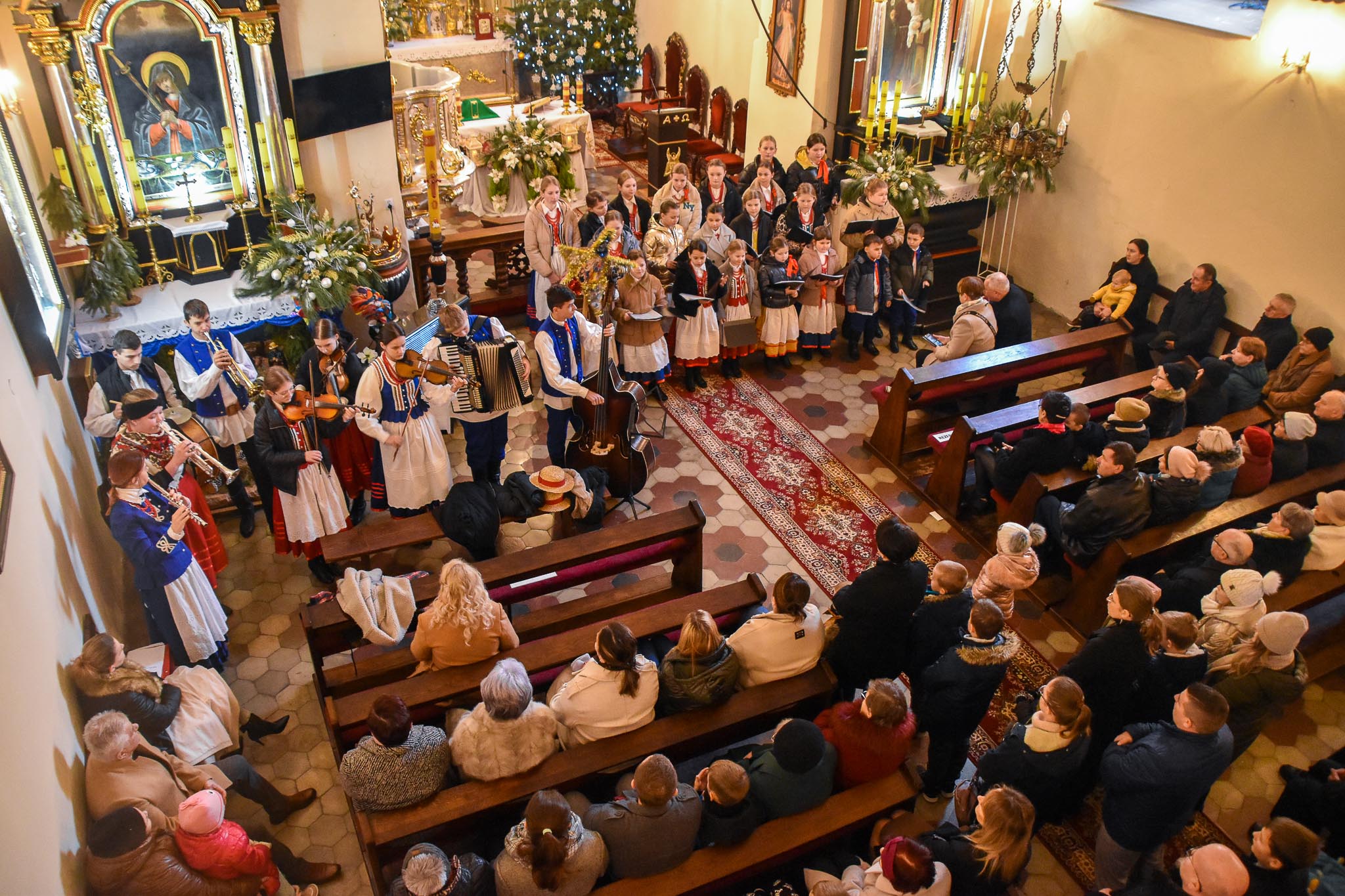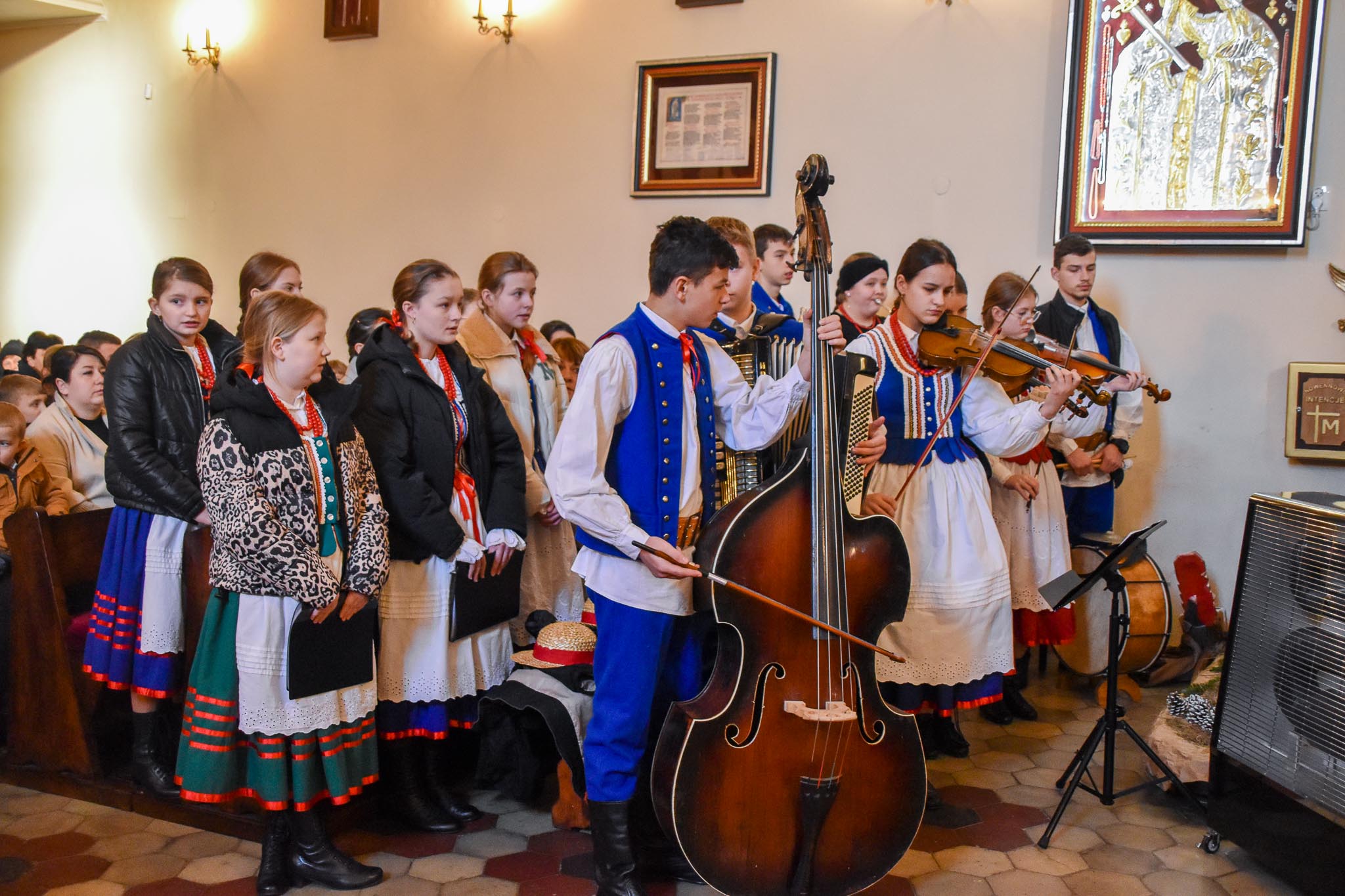 Przed Mszą św. o godz. 8.30 i po Mszy św. przy akompaniamencie kapeli zespół śpiewał najpiękniejsze kolędy i pastorałki. Zespół wraz z kapelą zapewnił również oprawę muzyczną Mszy Świętej.