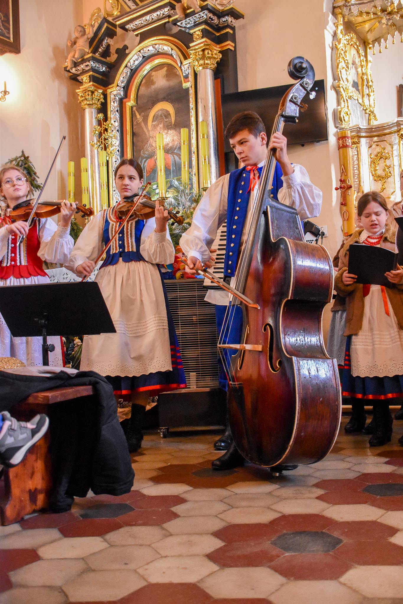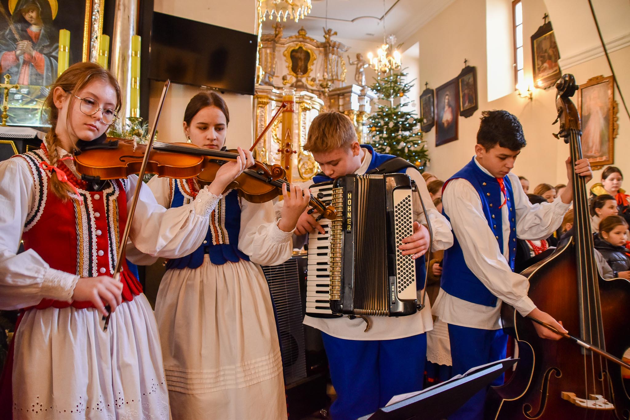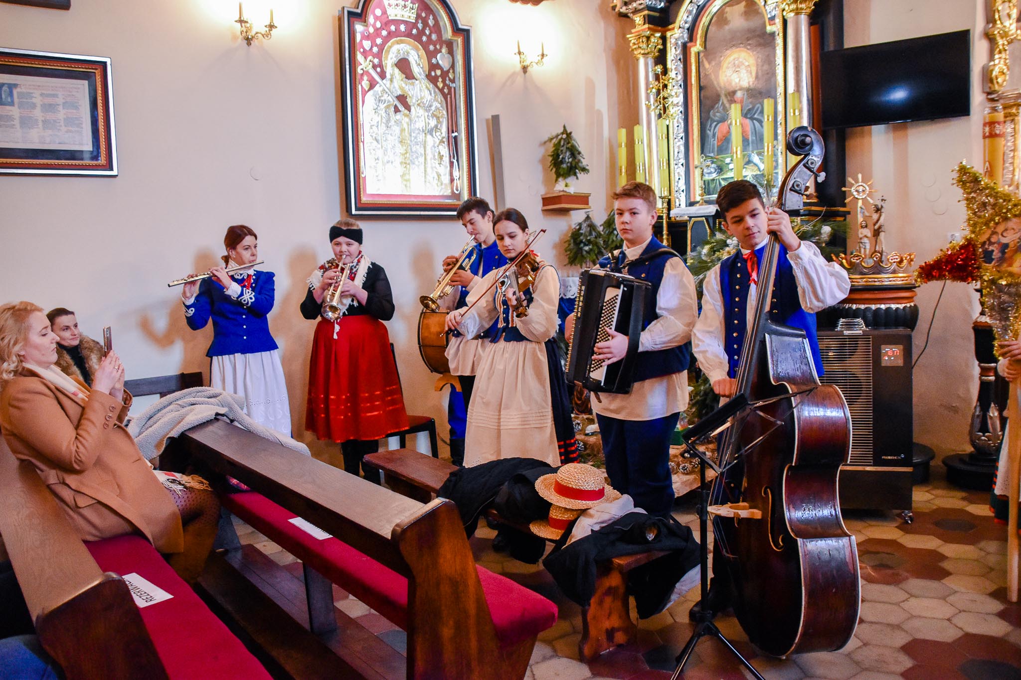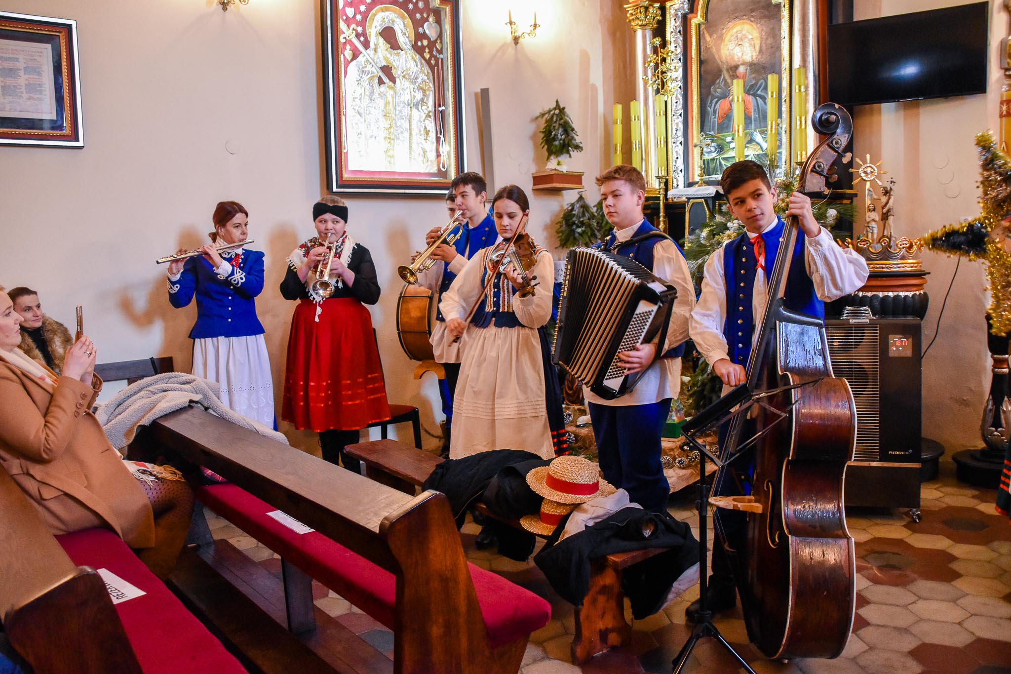 Przed Mszą św. o godz. 8.30 i po Mszy św. przy akompaniamencie kapeli zespół śpiewał najpiękniejsze kolędy i pastorałki. Zespół wraz z kapelą zapewnił również oprawę muzyczną Mszy Świętej.