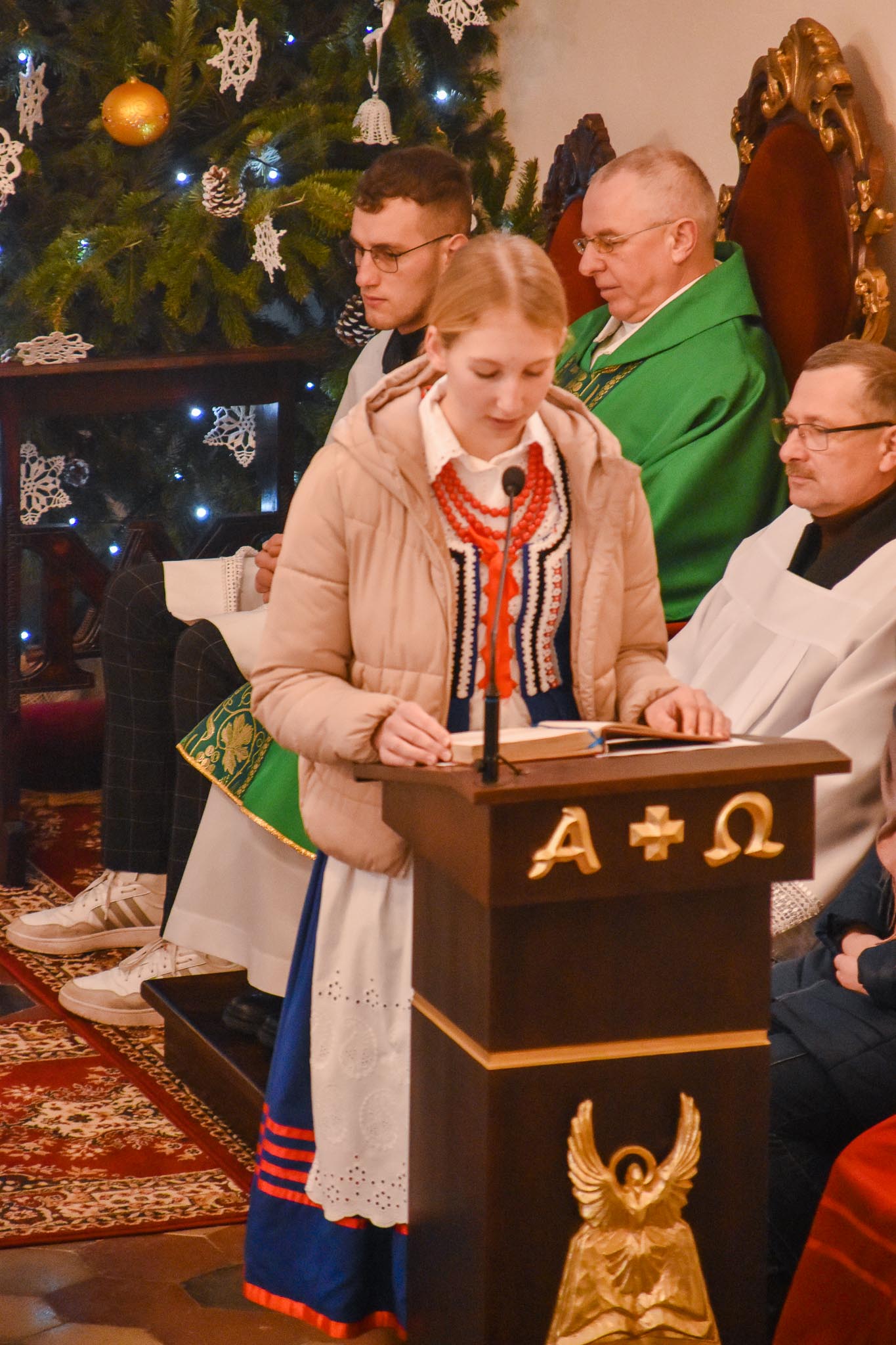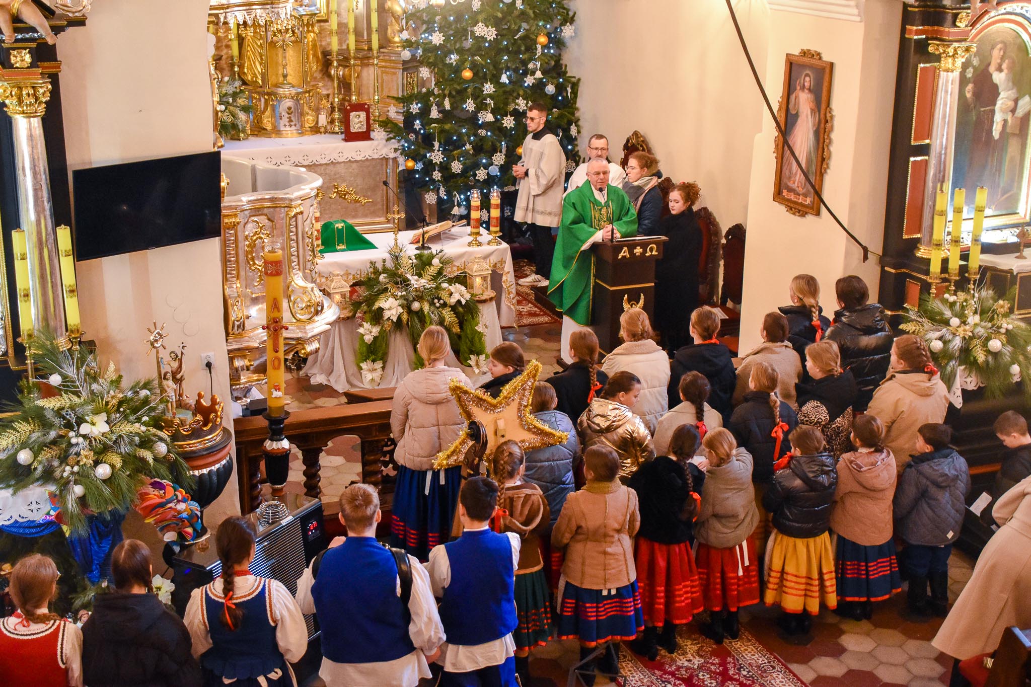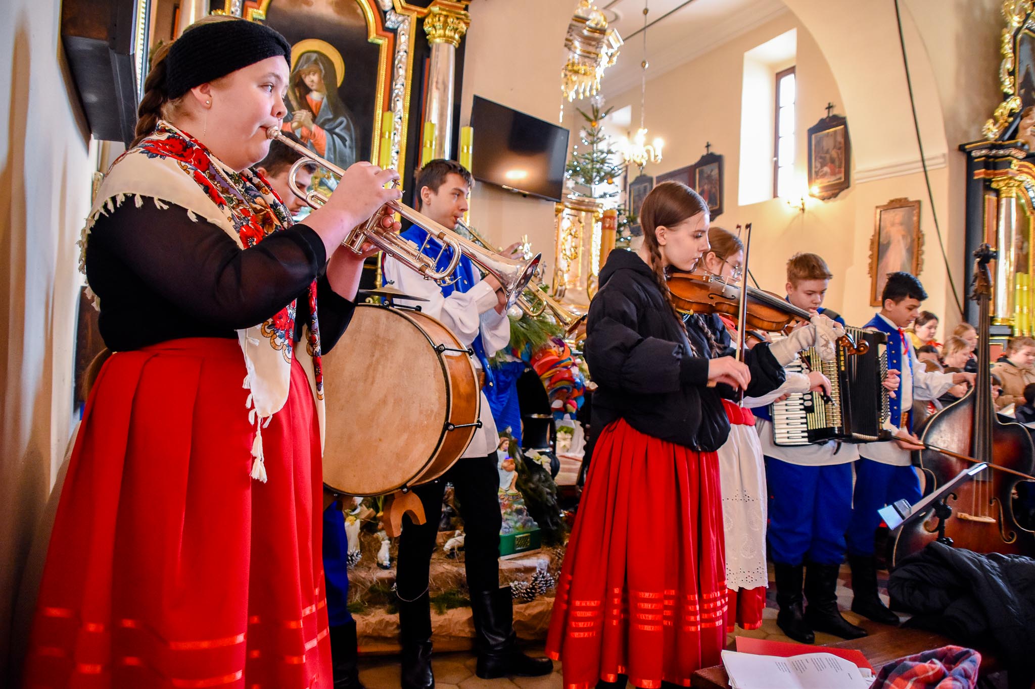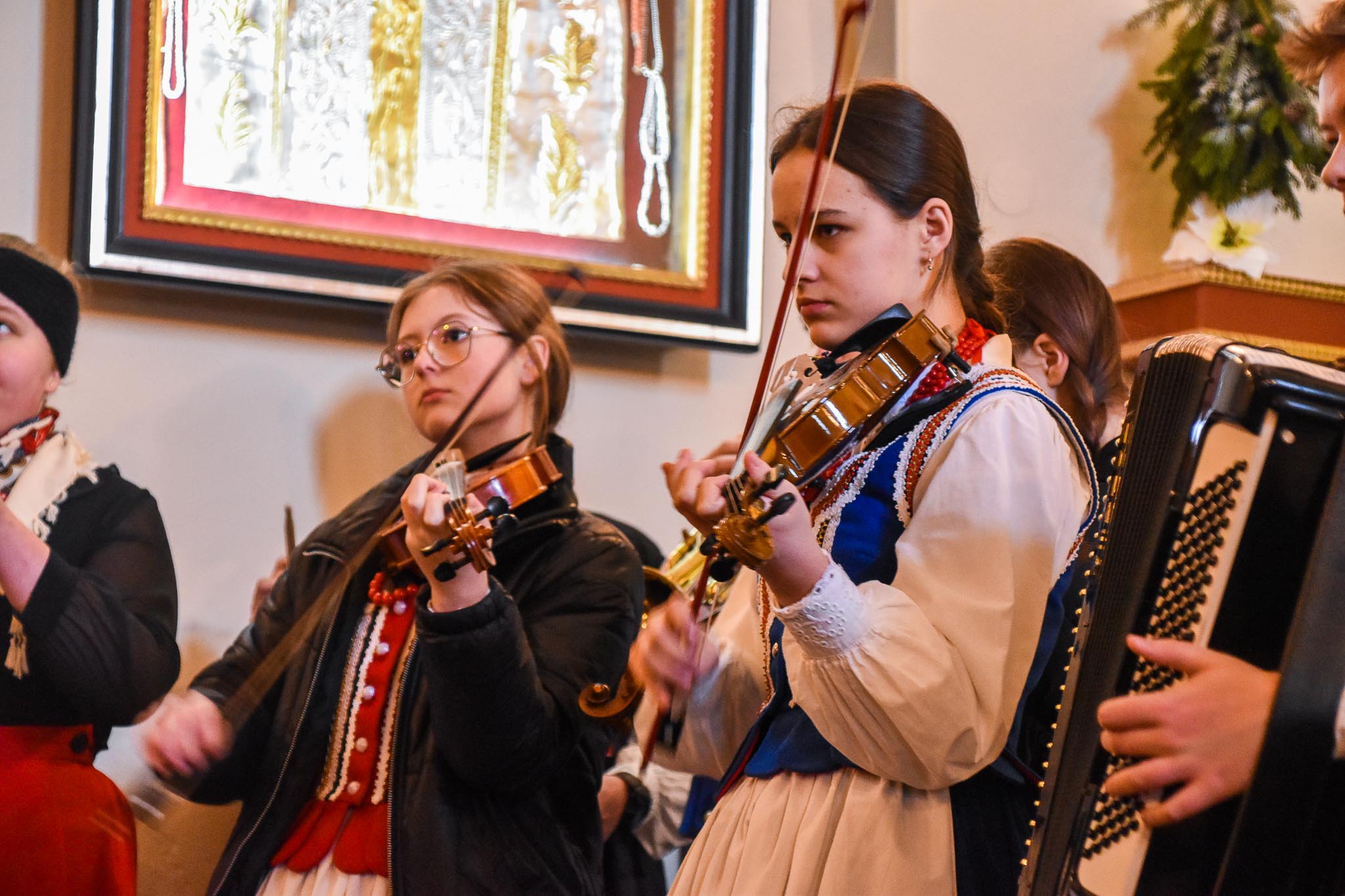 Przed Mszą św. o godz. 8.30 i po Mszy św. przy akompaniamencie kapeli zespół śpiewał najpiękniejsze kolędy i pastorałki. Zespół wraz z kapelą zapewnił również oprawę muzyczną Mszy Świętej.
