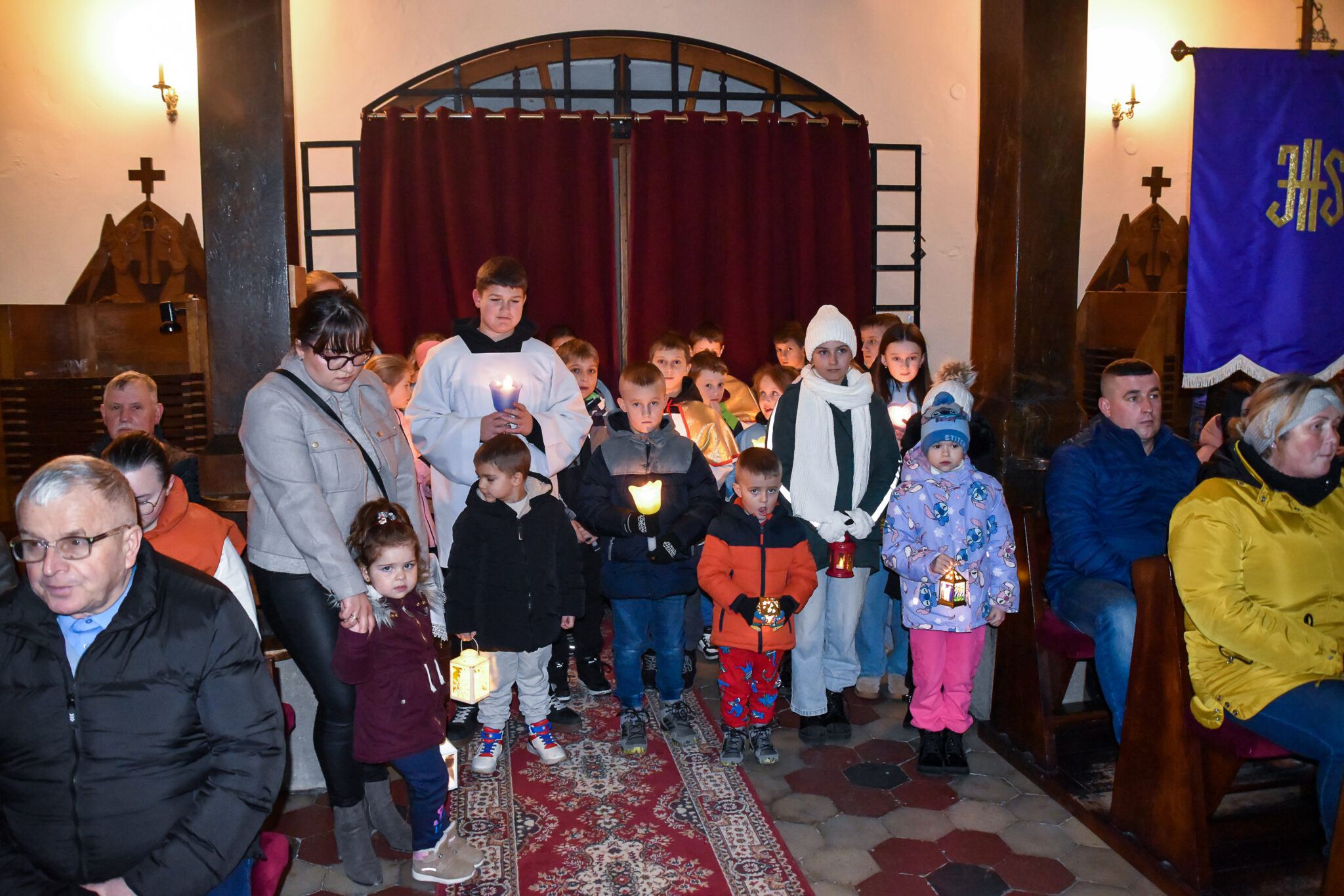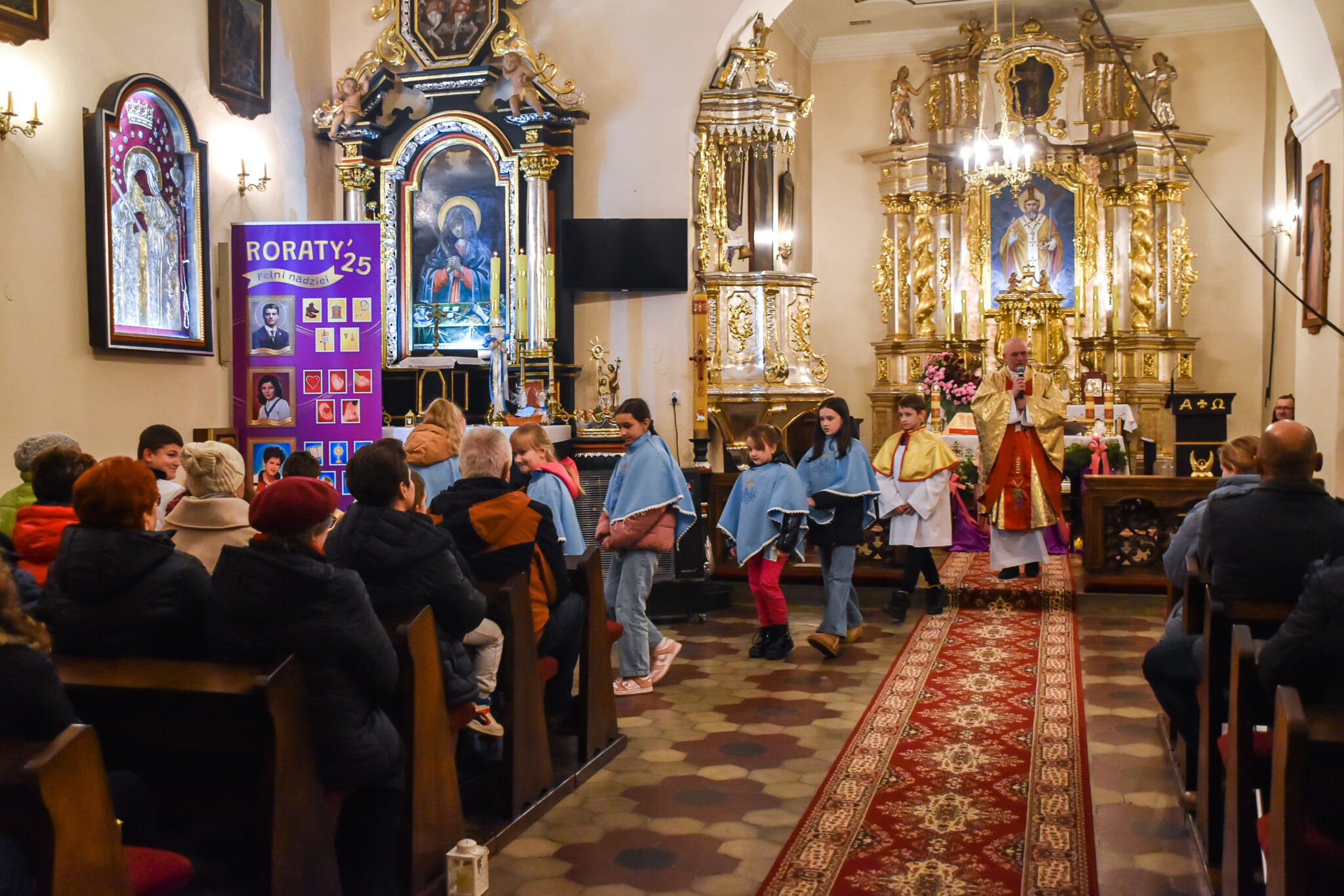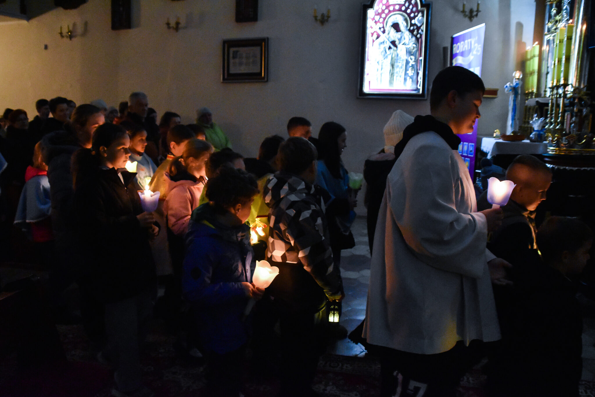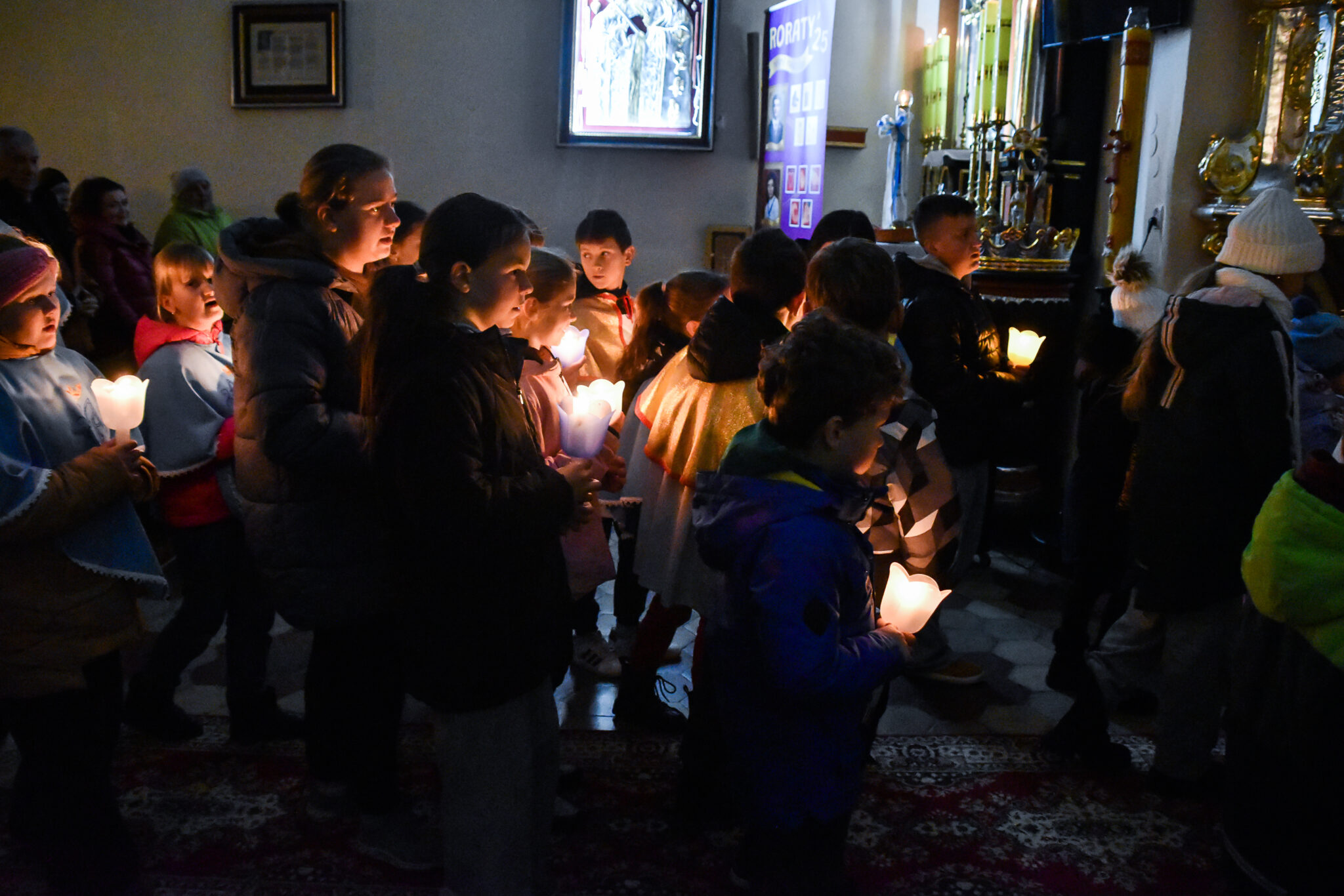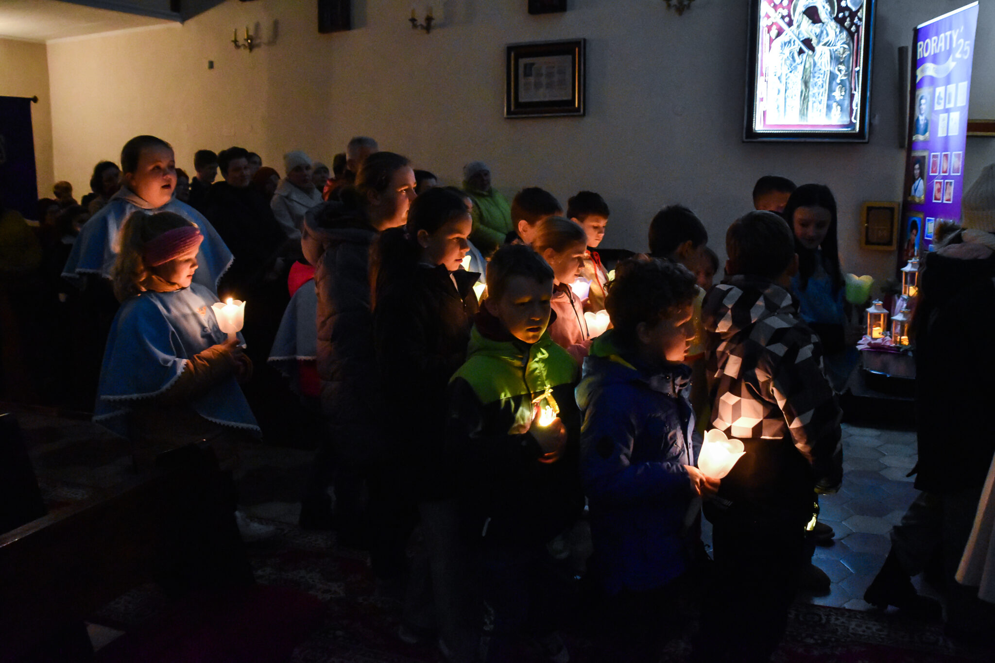W odbywających się w naszym kościele Roratach chętnie uczestniczą dzieci, które na początku Mszy św. idą w procesji prowadzonej przez ks. Rektora od drzwi wejściowych do ołtarza z zapalonymi lampionami. Msza św. rozpoczyna się przy wyłączonych światłach. Mrok świątyni rozpraszają jedynie świece i lampiony.