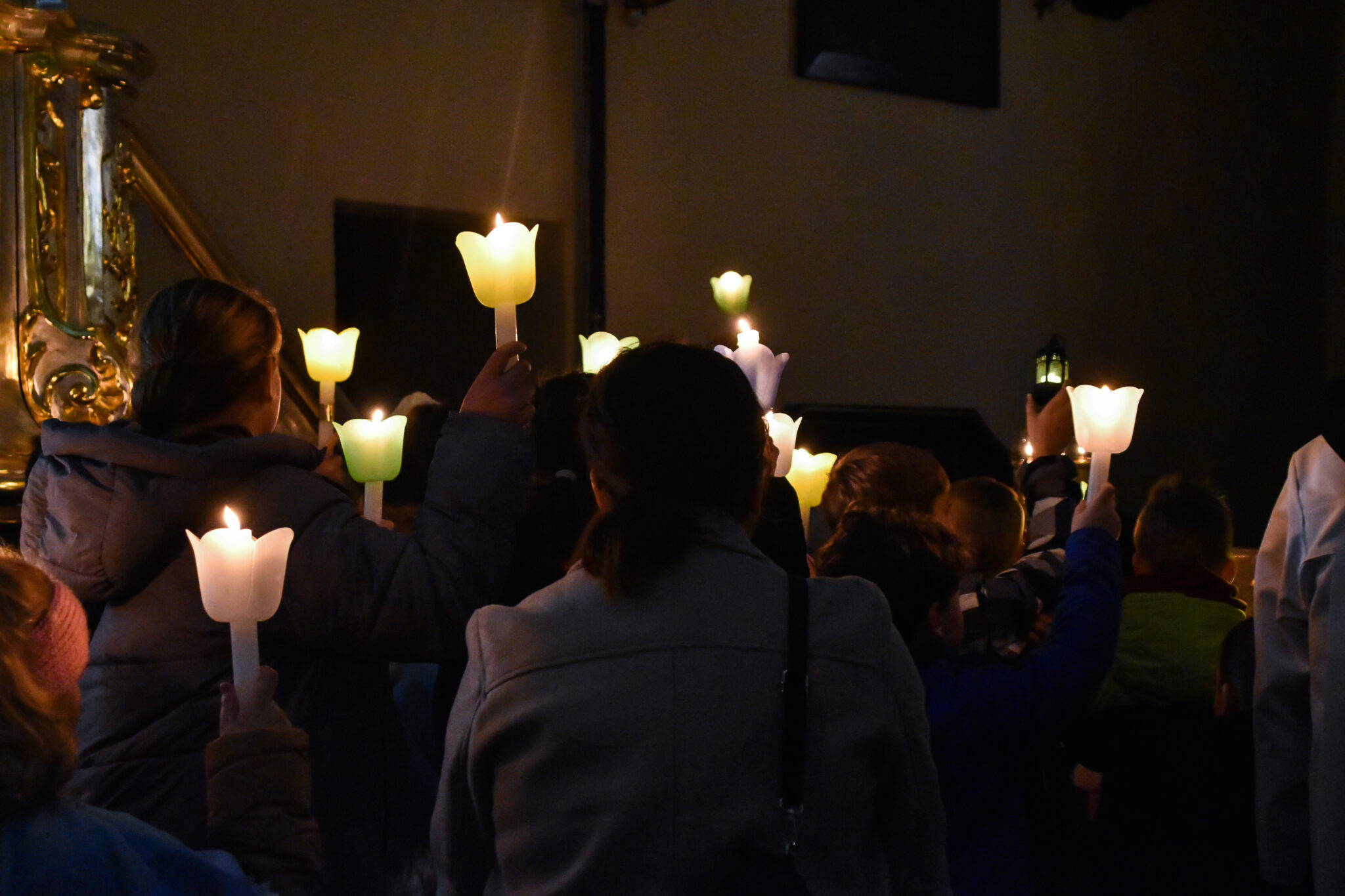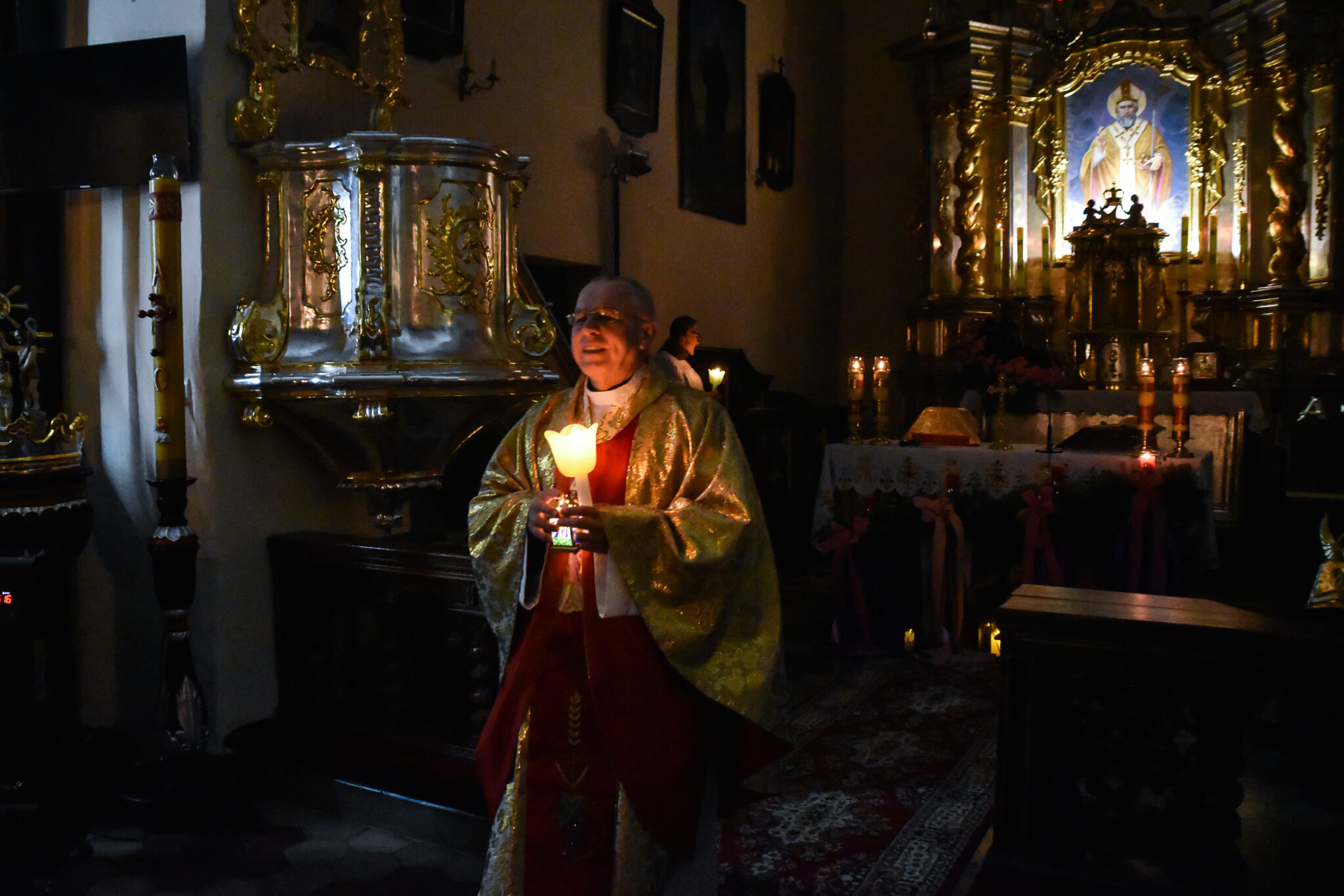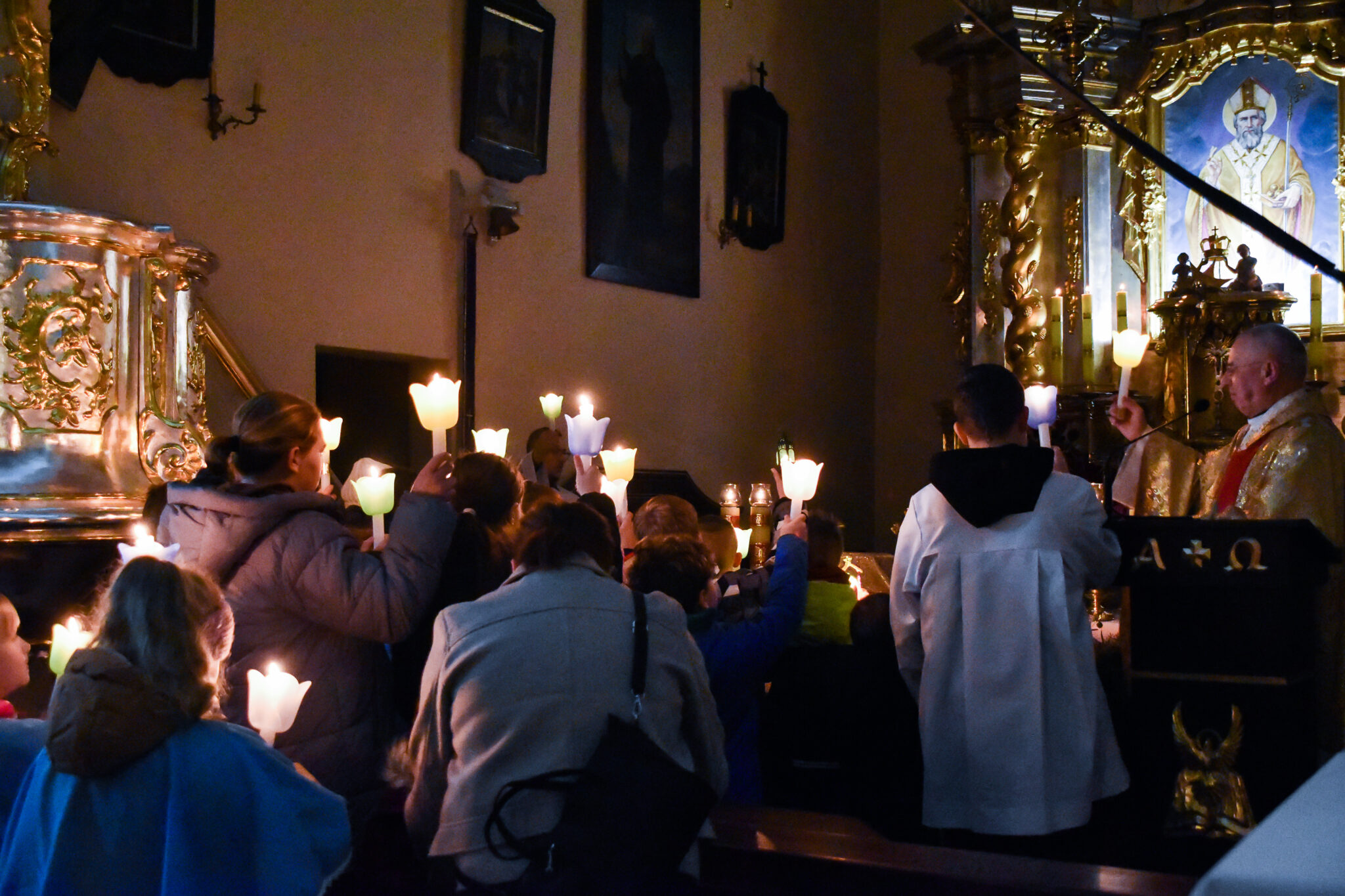 Po odśpiewaniu hymnu „Chwała na wysokości Bogu” zapalane są w kościele wszystkie światła.