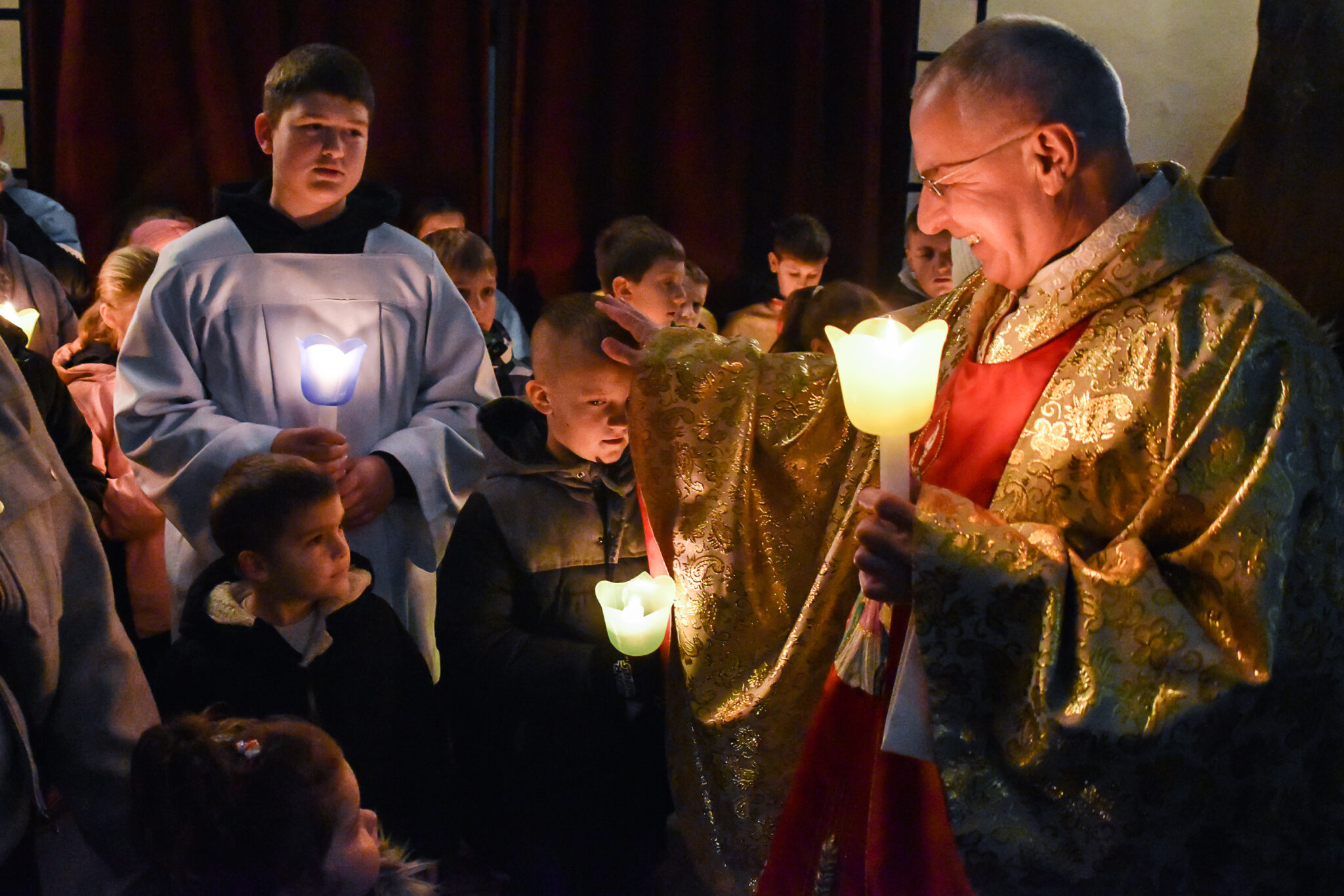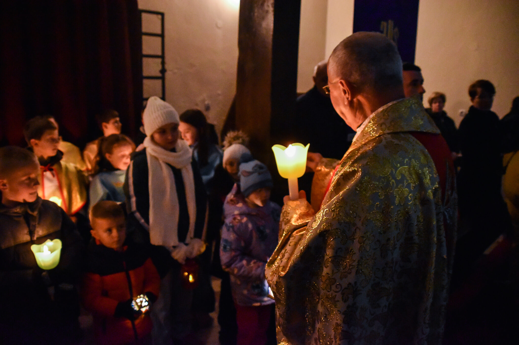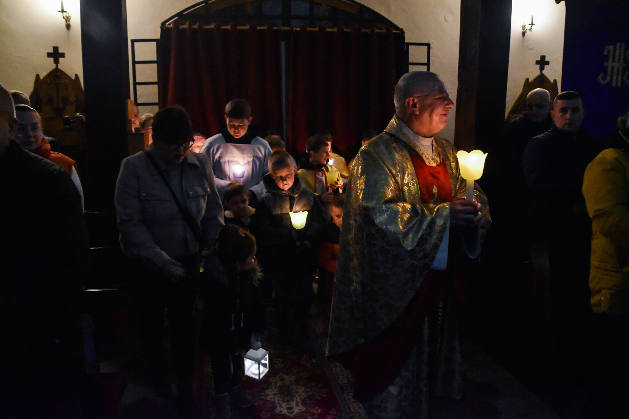 Po odśpiewaniu hymnu „Chwała na wysokości Bogu” zapalane są w kościele wszystkie światła.