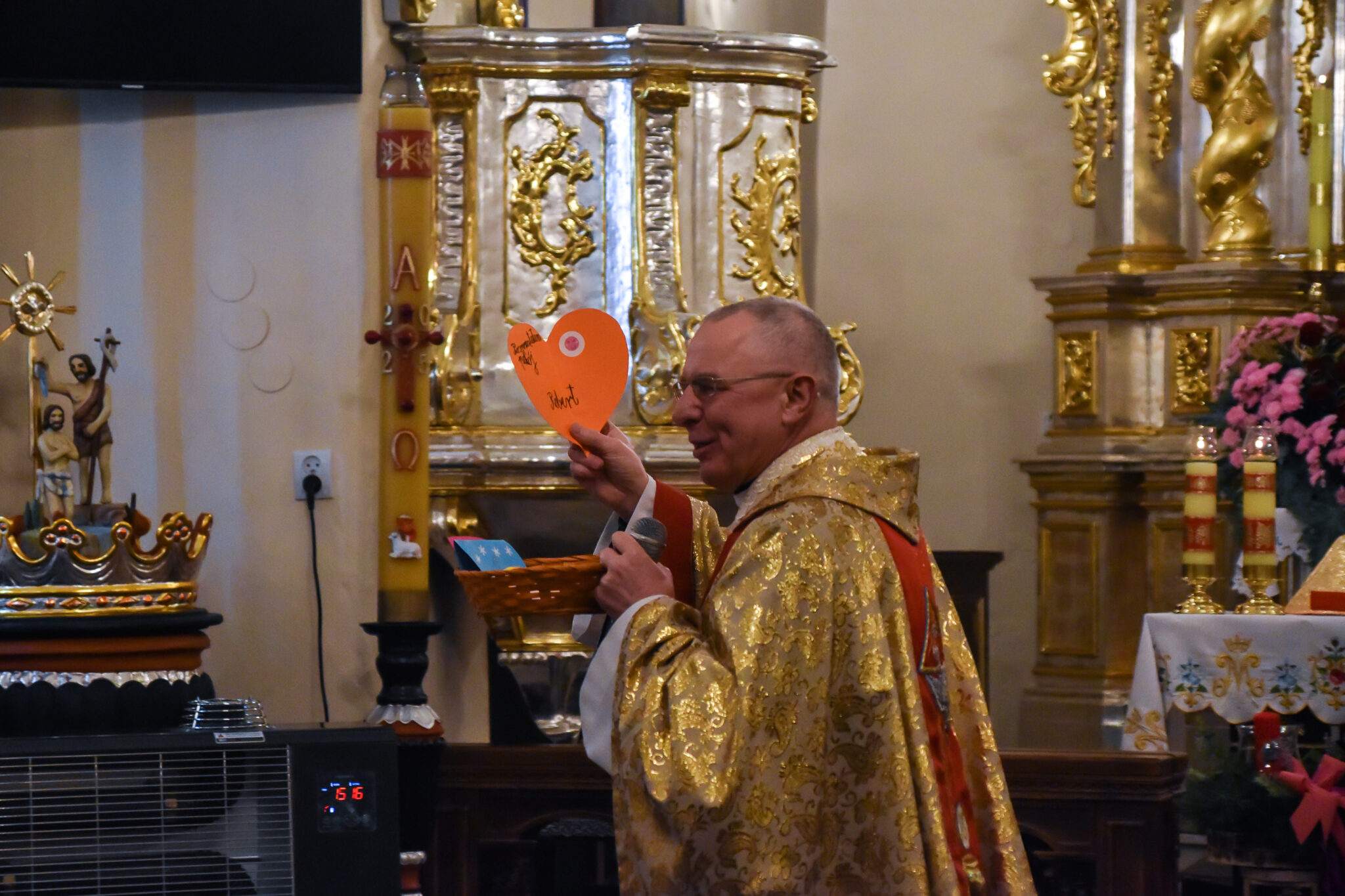 W czasie Rorat losujemy pamiątki dla dzieci spośród wykonanych serduszek z wypisanym dobrym uczynkiem.