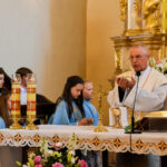 W czwartek 19 czerca 2025 r. przeżywaliśmy Uroczystość Najświętszego Ciała i Krwi Chrystusa. Uroczystość rozpoczęła się mszą św. o godzinie 8.30, po której wyruszyła procesja do czterech ołtarzy.
