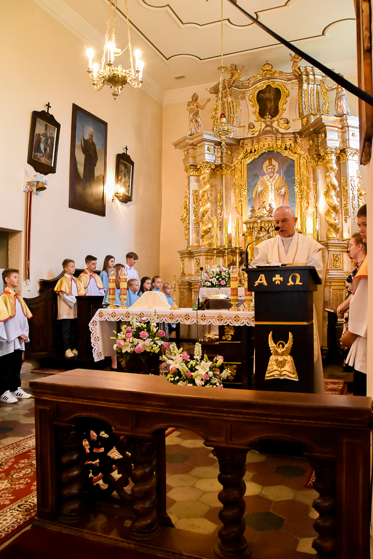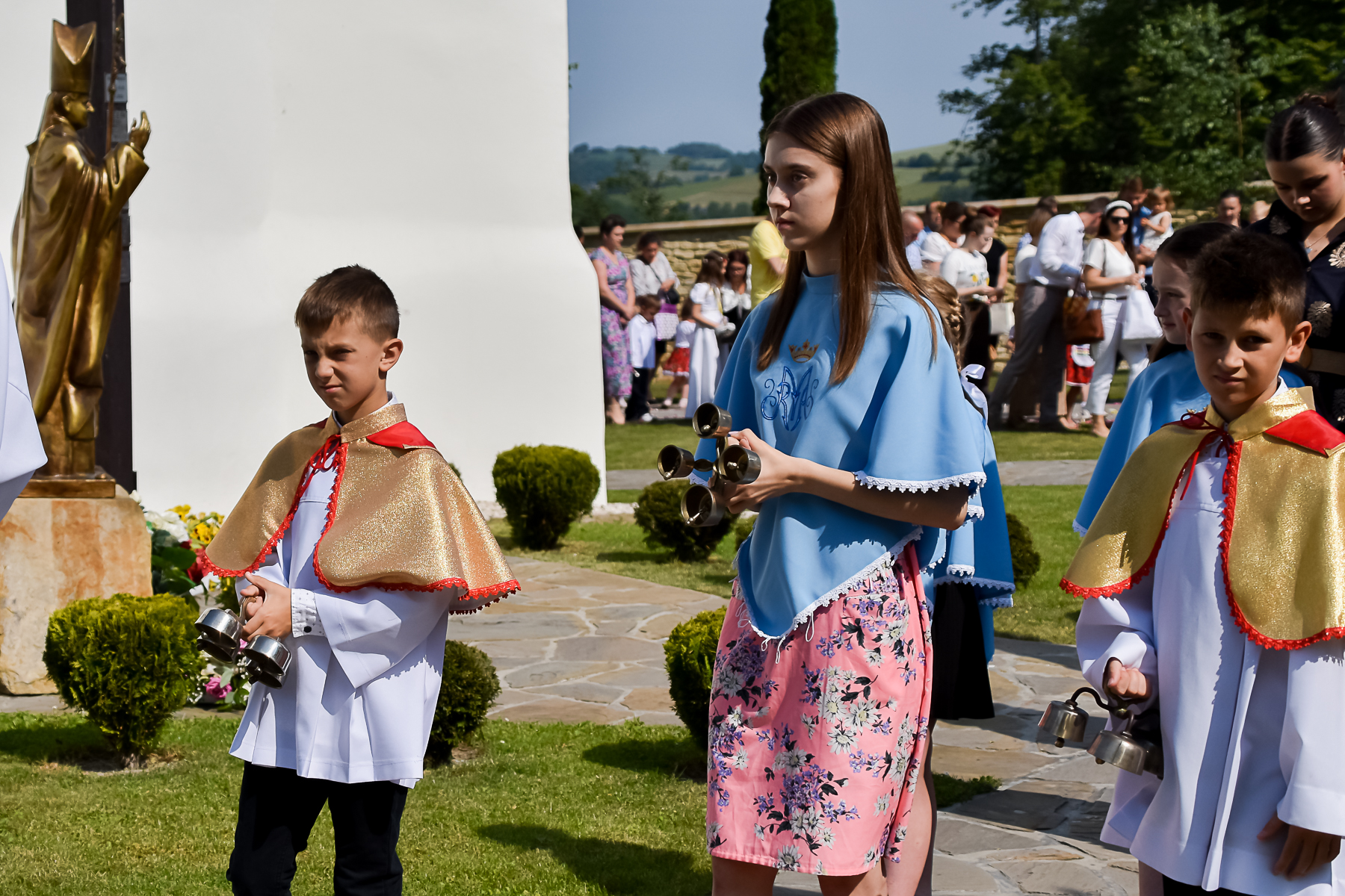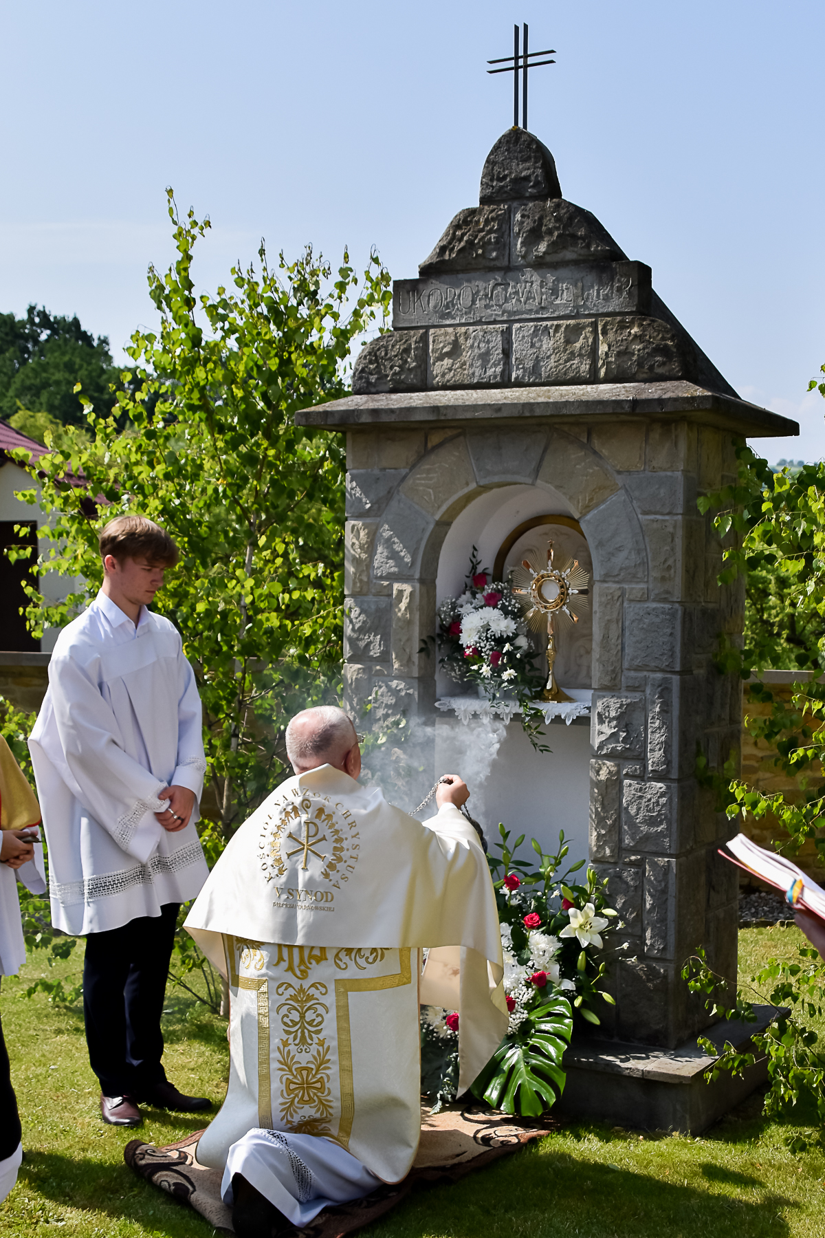 W czwartek 19 czerca 2025 r. przeżywaliśmy Uroczystość Najświętszego Ciała i Krwi Chrystusa. Uroczystość rozpoczęła się mszą św. o godzinie 8.30, po której wyruszyła procesja do czterech ołtarzy.