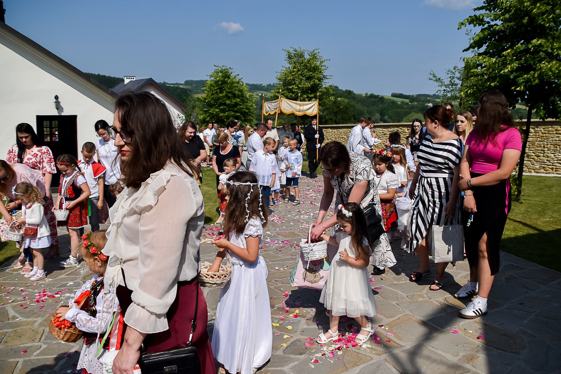 W procesji udział wzięli: Liturgiczna Służba Ołtarza, Dziewczęca Służba Maryjna, Strażacy z OSP Sędziszowa z pocztem sztandarowym, niosący feretrony i sztandary, dzieci sypiące kwiaty przed Najświętszym Sakramentem oraz licznie zgromadzeni wierni.