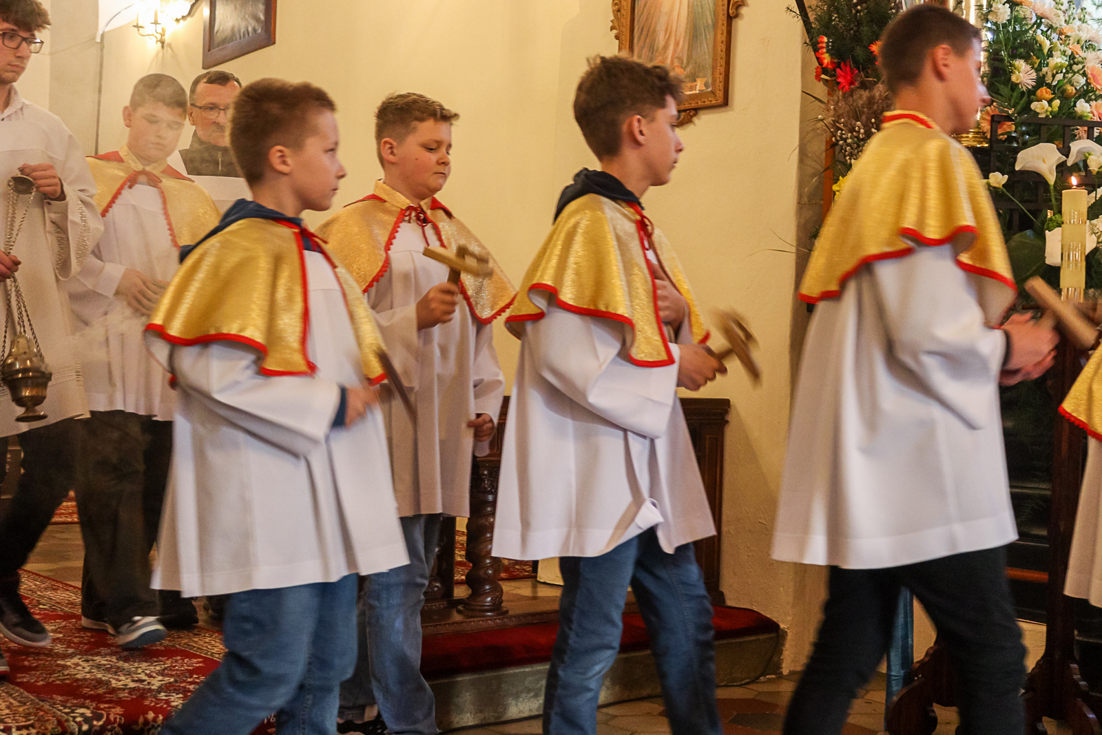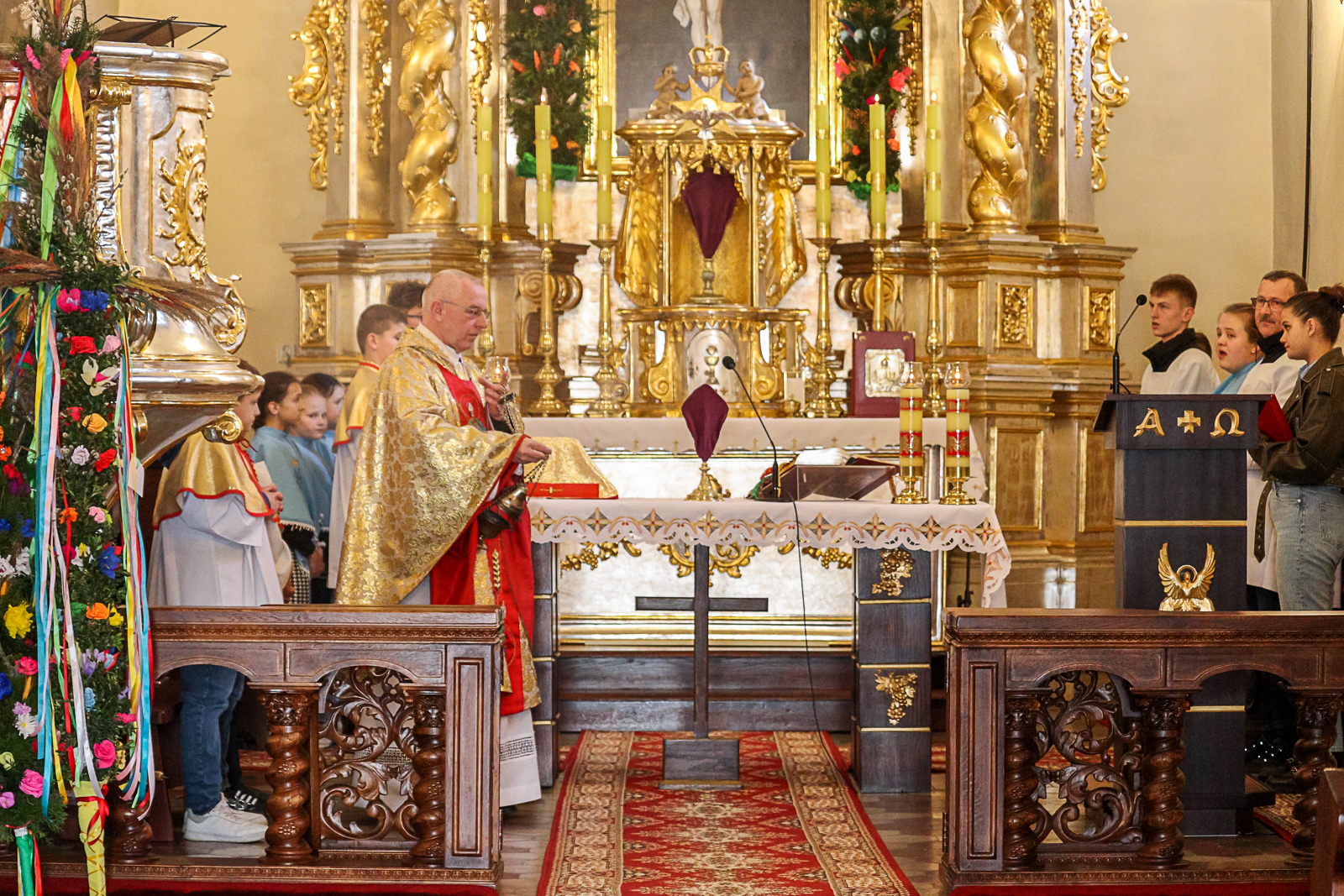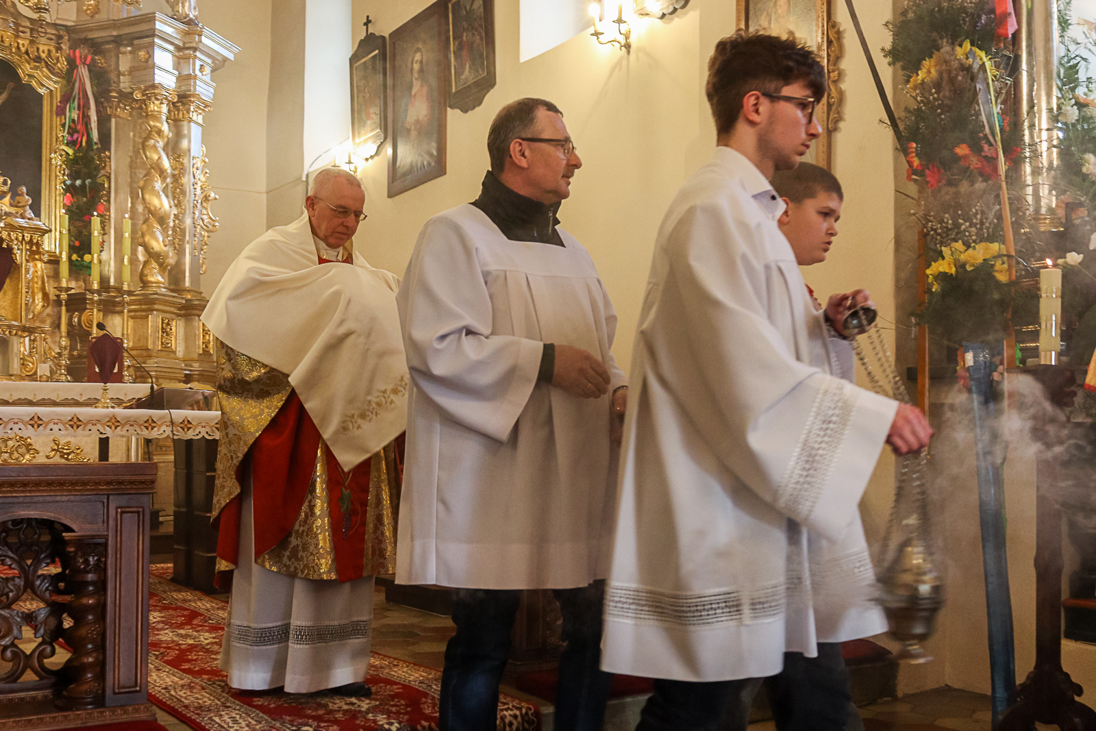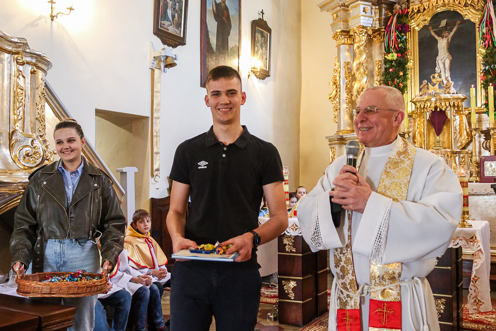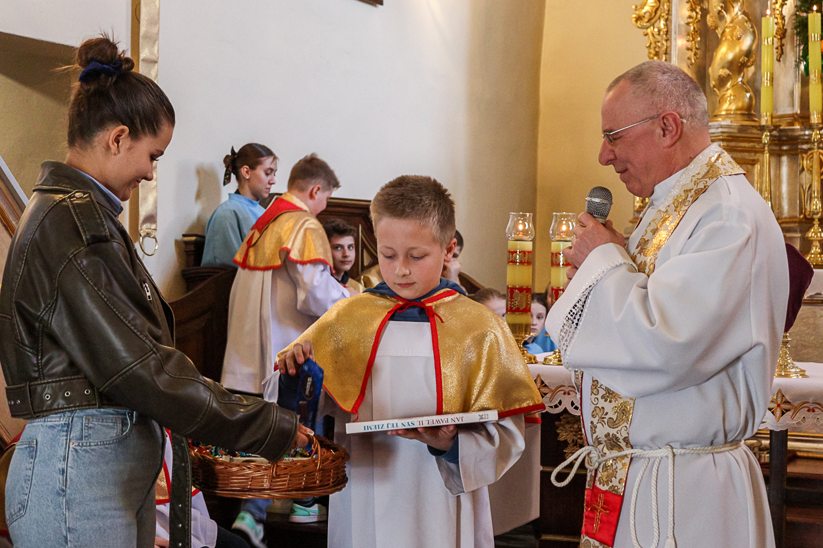 Przed Mszą św. w Wielki Czwartek ks. Rektor Jacek Kupiec podziękował wszystkim wykonawcą Palm Wielkanocnych i wręczył dyplomy i upominki.