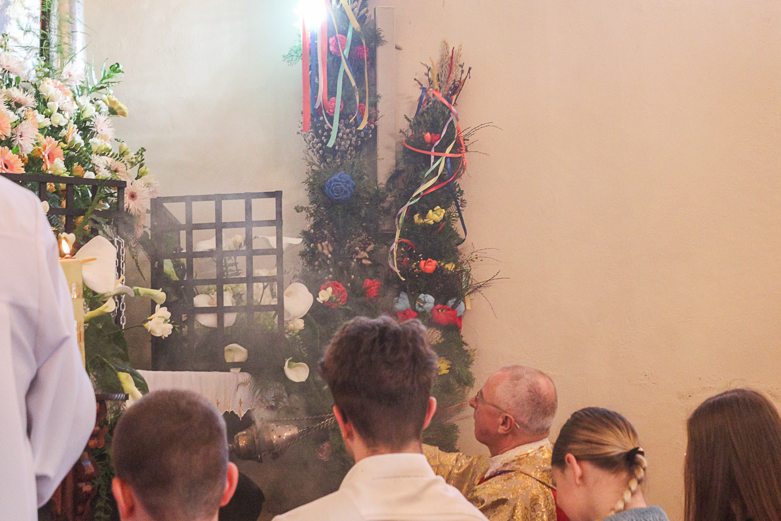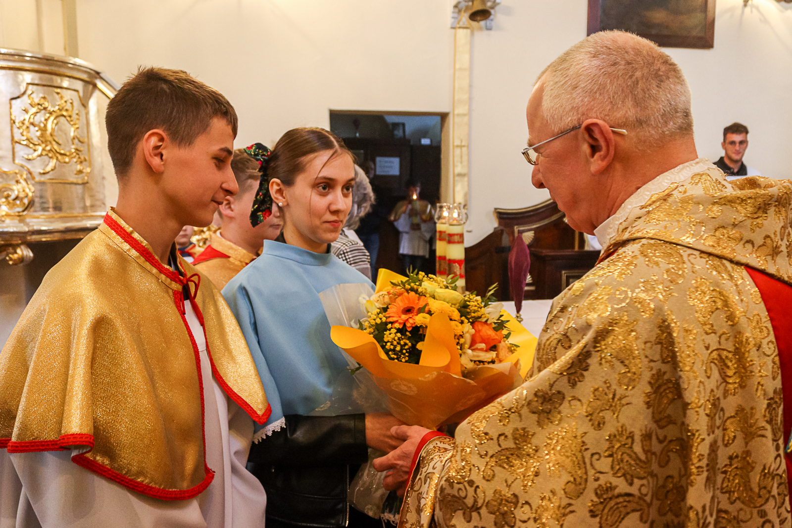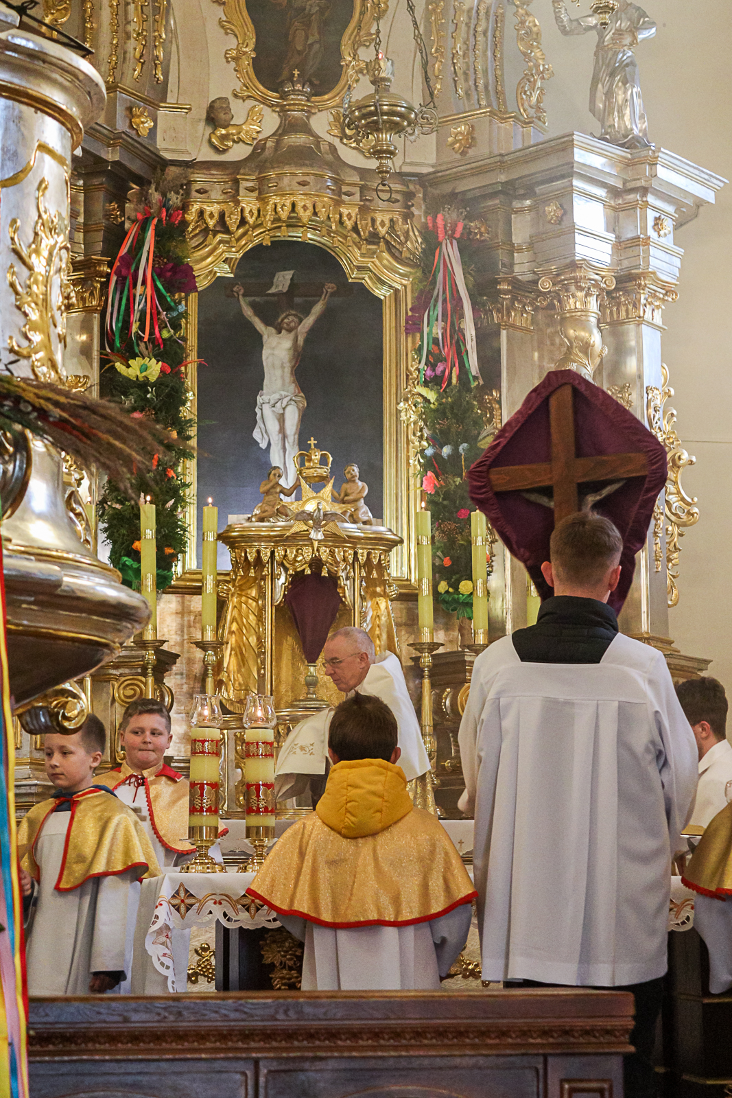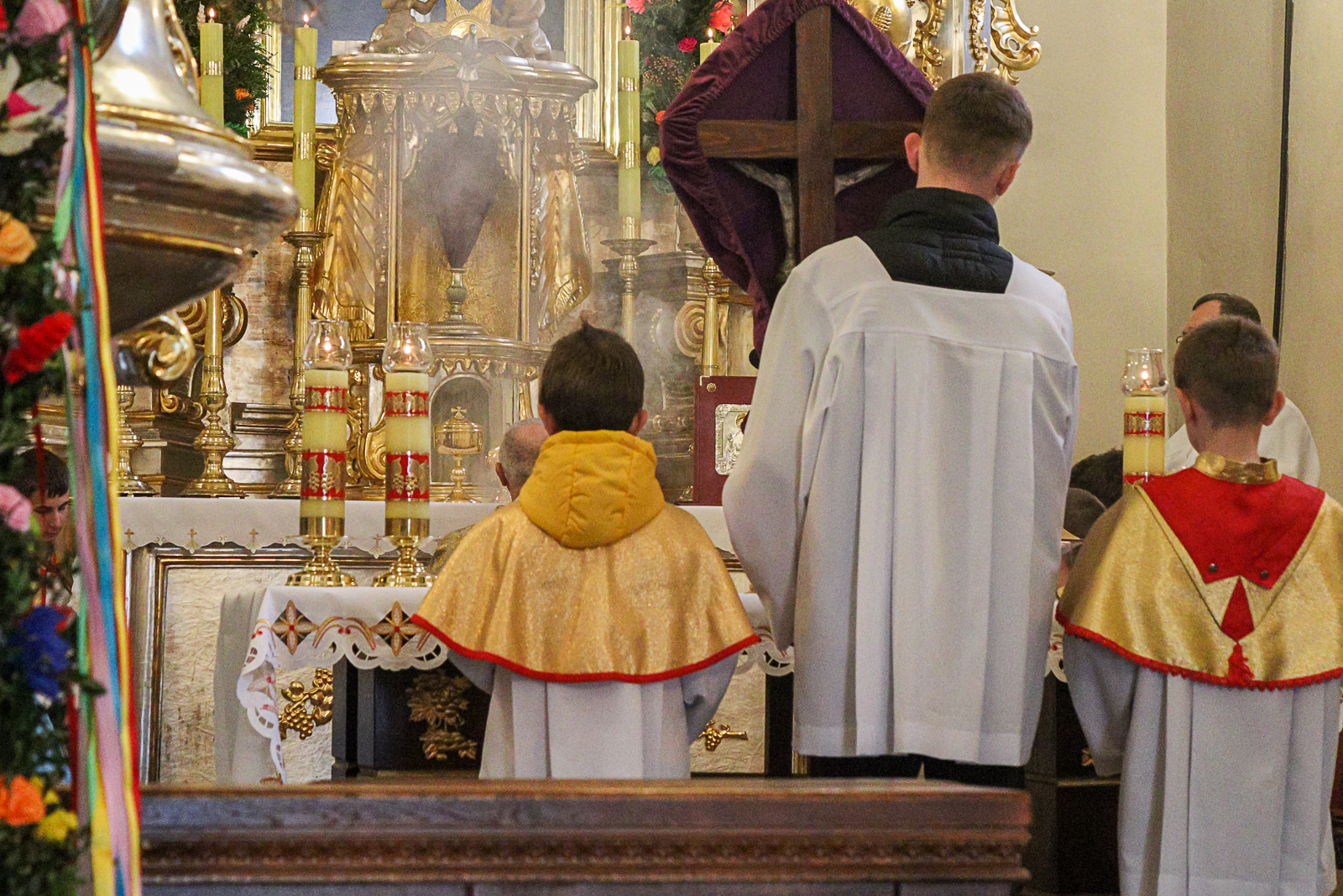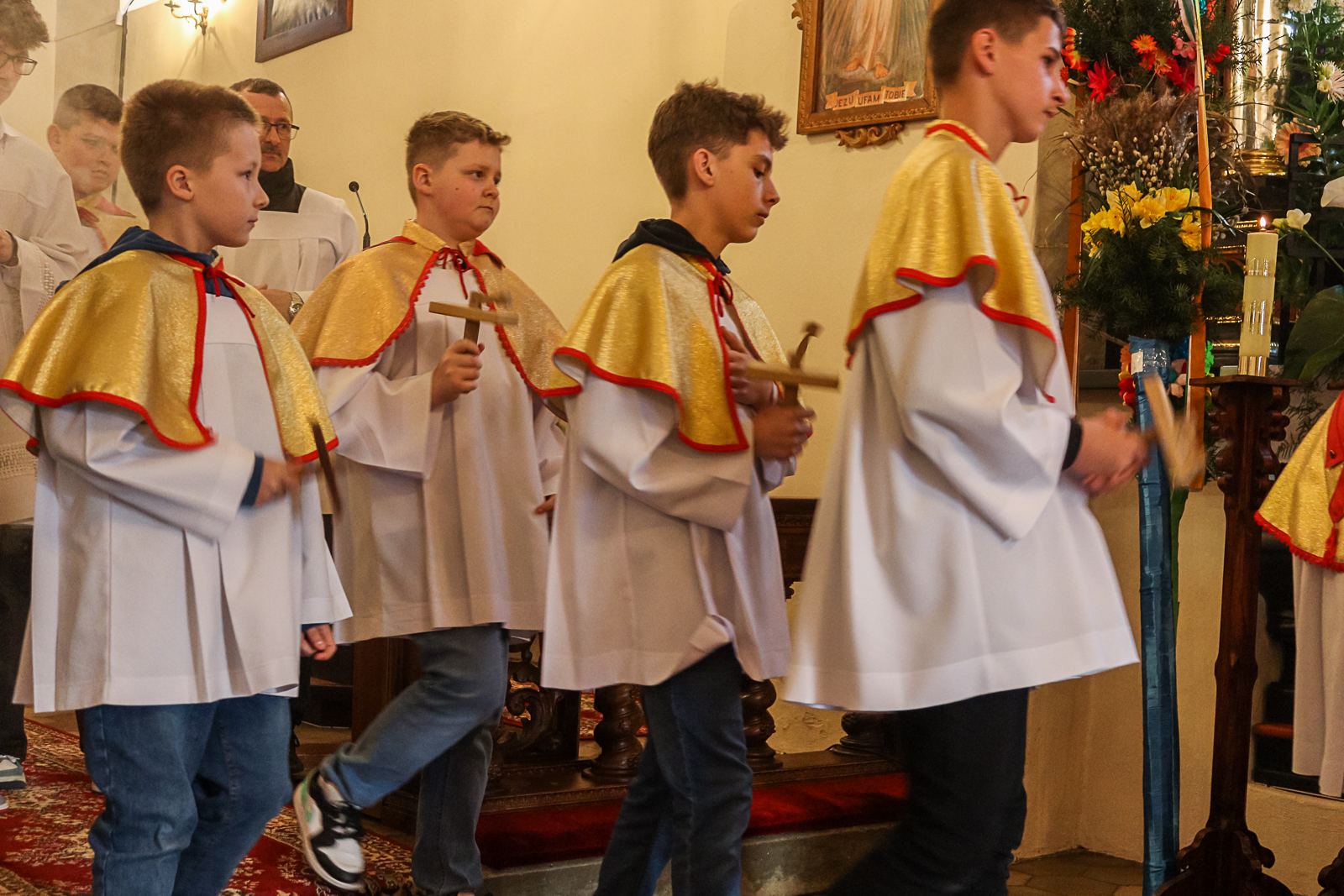 Przed Mszą św. w Wielki Czwartek ks. Rektor Jacek Kupiec podziękował wszystkim wykonawcą Palm Wielkanocnych i wręczył dyplomy i upominki.