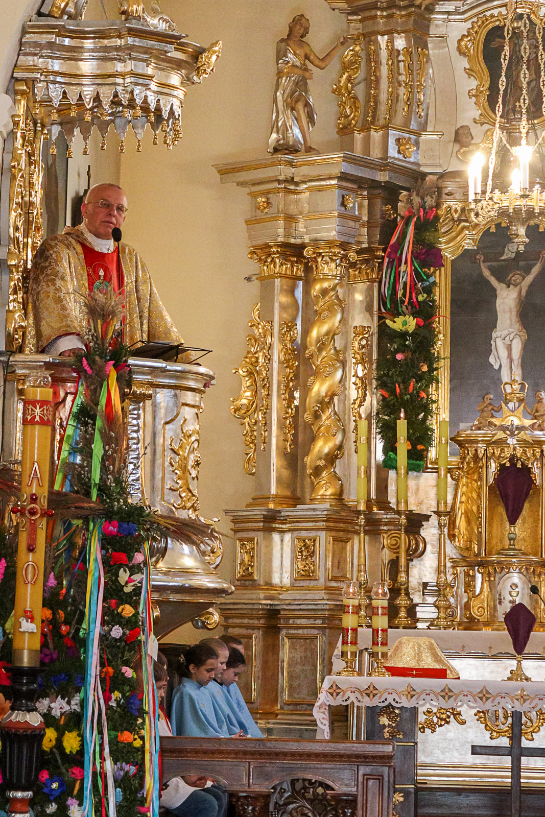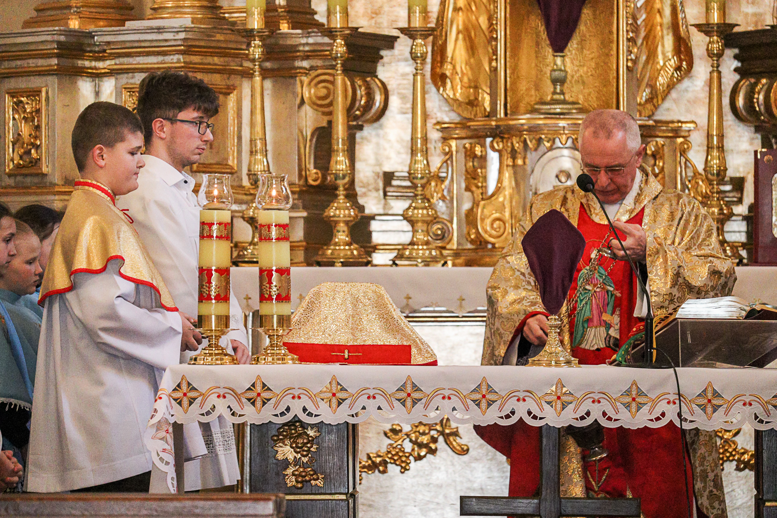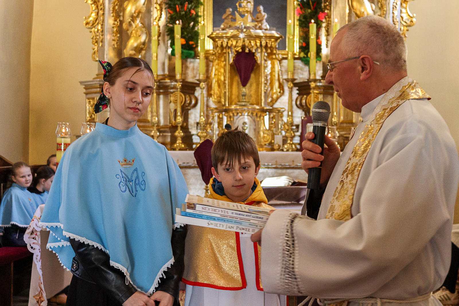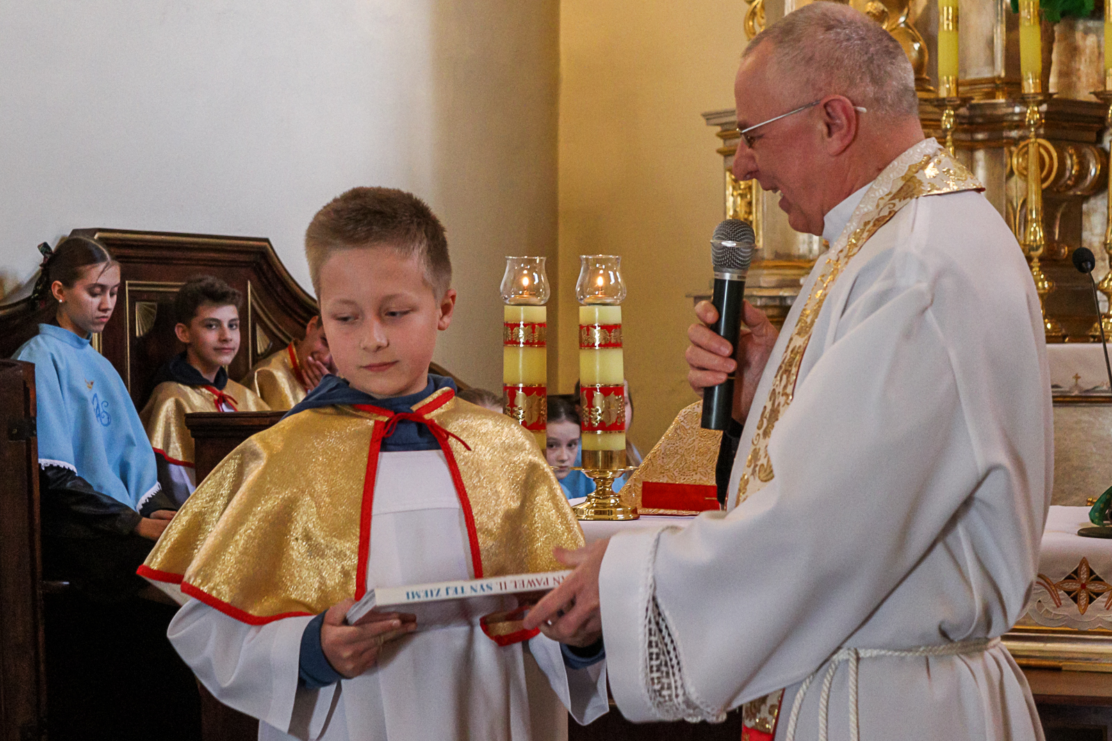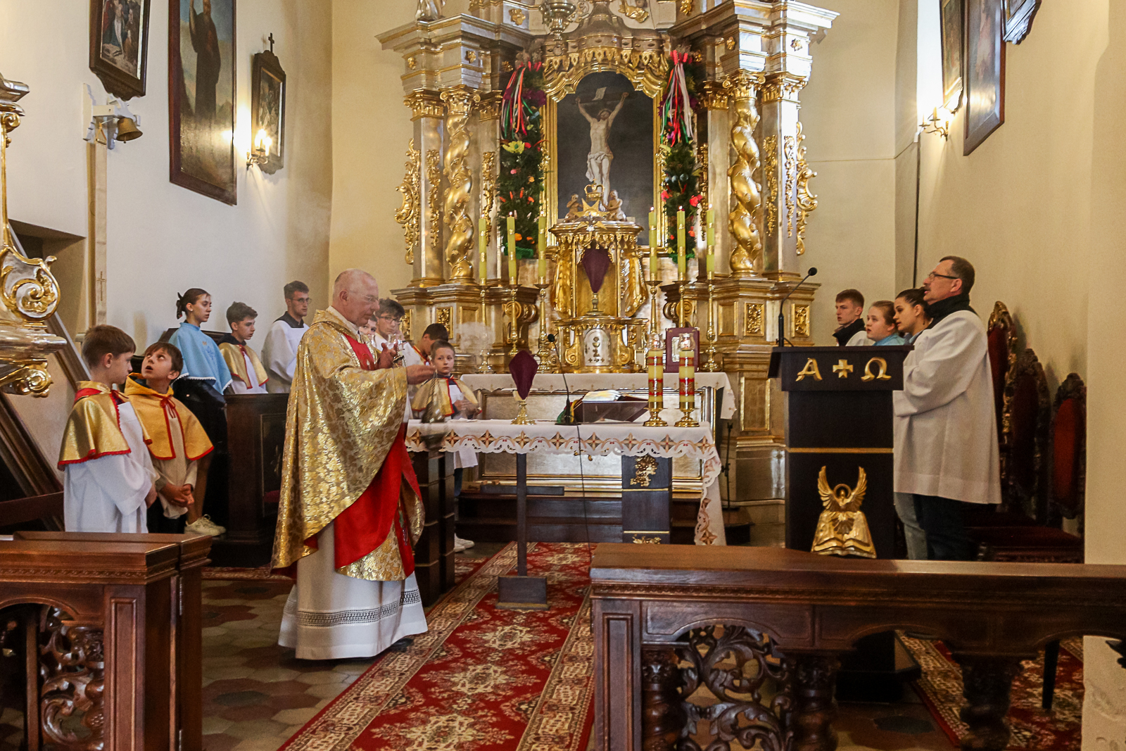 Przed Mszą św. w Wielki Czwartek ks. Rektor Jacek Kupiec podziękował wszystkim wykonawcą Palm Wielkanocnych i wręczył dyplomy i upominki.