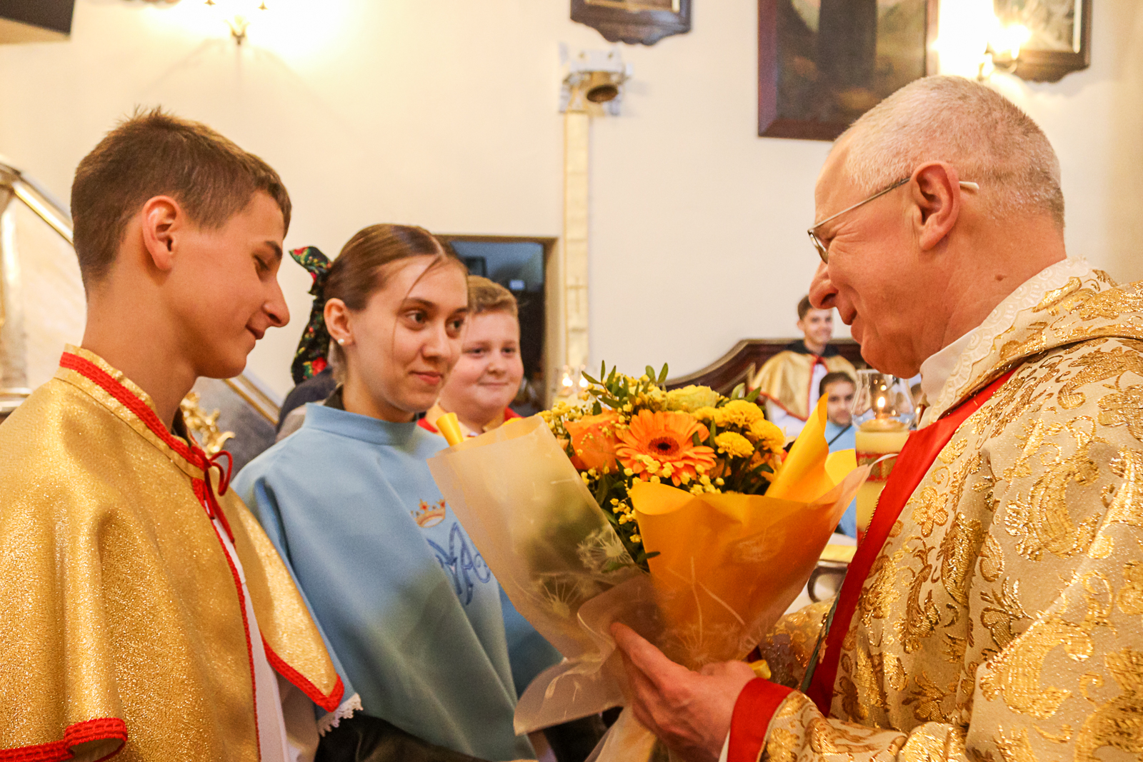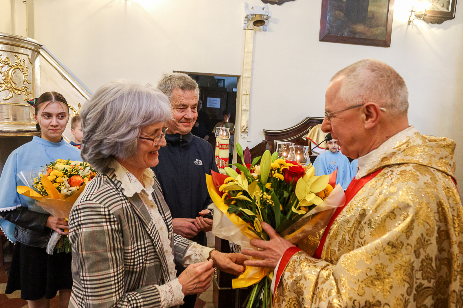 Przedstawiciele Rady Duszpasterskiej i służby liturgicznej złożyli podziękowanie ks. Rektorowi Jackowi Kupcowi za codzienną posługę kapłańską w naszym kościele, za każdą Eucharystię, kazanie, spowiedź, modlitwę i błogosławieństwo. Wyrazili wdzięczność za Jego serdeczność, życzliwość i otwartość. Zapewniając o modlitwie w intencji naszego duszpasterza, złożyli życzenia, aby Jezus Chrystus błogosławił Mu w każdym dniu kapłańskiej posługi, był źródłem radości i spełnienia.